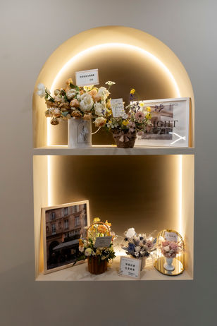 以曲線、弧形線條減化空間銳利感,搭配整體奶茶色系的牆面塗刷,讓整體空間氛圍較柔和與舒適。 在線條的引導下會發現,櫃檯牆面與樓梯有著連貫性的呼應,也是本次設計的亮點之一。